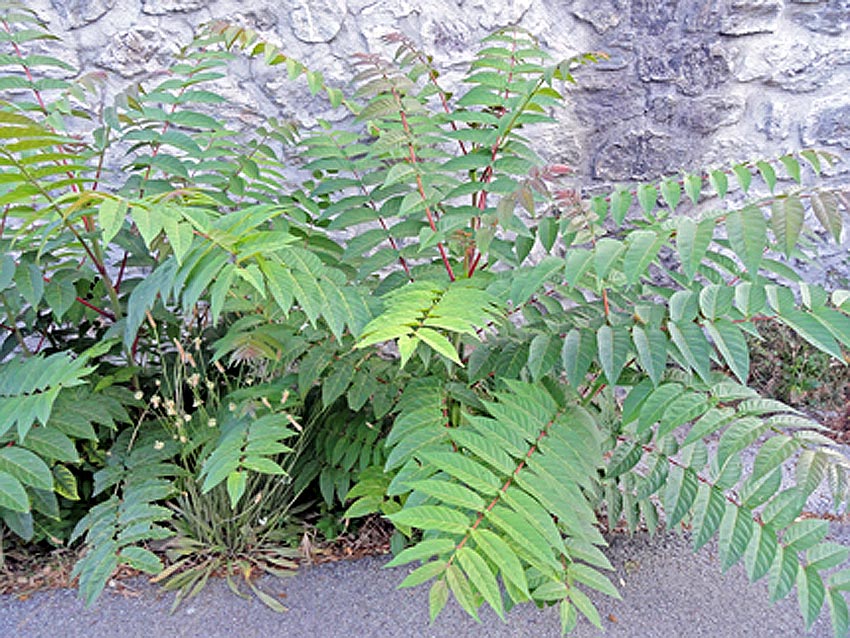 Celle plante, l'ailante, est en réalité un arbre qui peut atteindre 25 mètres de haut et se propage très rapidement, au détriment de la biodiversité locale.