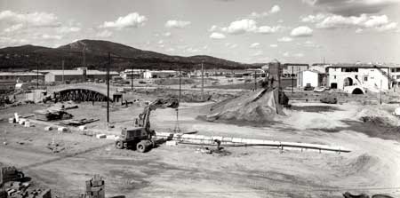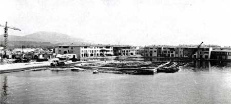 le 05/12/68: les fondations de l'Eglise sont en place, le pont d'accès en construction et la Maison commune est presqu'achevée...