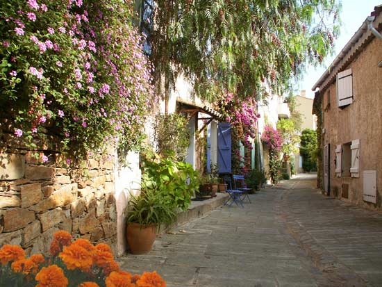"Grimaud est un charmant petit village en pierres qui ressemble à ces constructions de plâtre qui décorent à Noël les crèches à coté des santons. Tellement charmant qu'on aurait envie de l'emporter dans du papier Cellophane et de souffler sur les ailes de son moulin pour nous rappeler les meilleures histoires de Daudet.