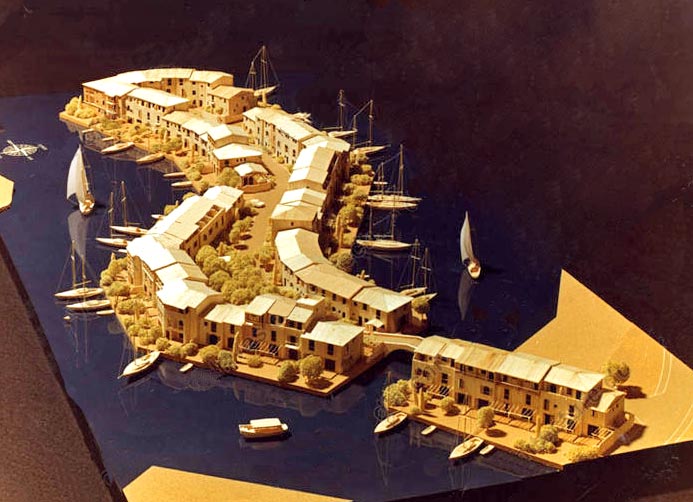 - Le premier ci-dessous n'est pas de bonne qualité. Toutefois on distingue nettement qu'il n'est pas prévu de "Rond d'Eau", ni de Chantier naval, ni de ponts, ni de rue, mais plusieurs ensembles d'immeubles autour de bassins ou piscines...